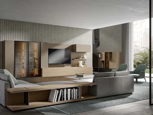 Vuoi progettare un soggiorno pratico e operativo? Ti presentiamo la parete attrezzata My Space 25-01 Alf Da Frè dalle linee decise moderne.