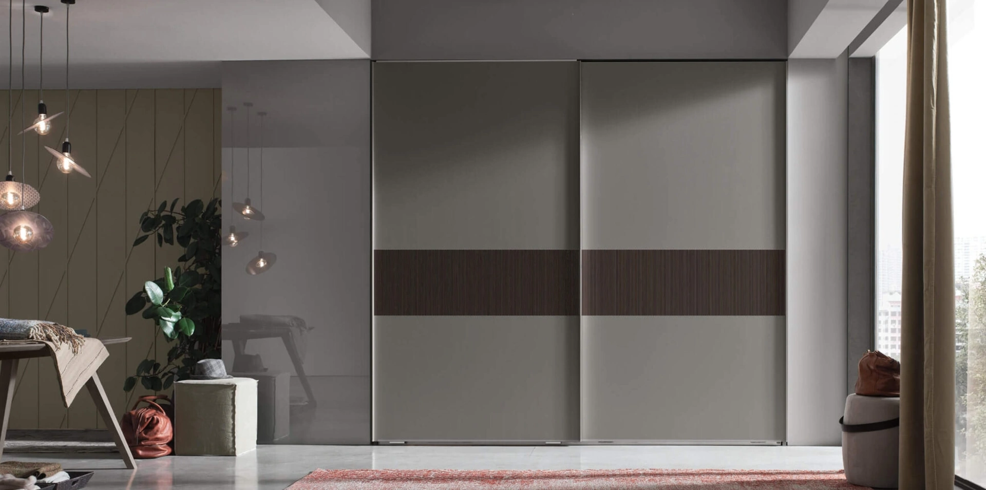 Per allestire ottimamente una stanza funzionale ed esteticamente gradevole, scegli le più esclusive soluzioni dei migliori brand, letti, armadi e comodini di alto contenuto estetico. Contattaci e ottieni informazioni sulla nostra linea di Arredamento Casa: potrai completare la zona del riposo contando su una ricca varietà di mobili contenitori moderni, come l'armadio in melaminico in foto. Gli Armadi a muro con ante scorrevoli sono componenti imprescindibili in camera, per renderla ben arredata, funzionale e completa di tutto.