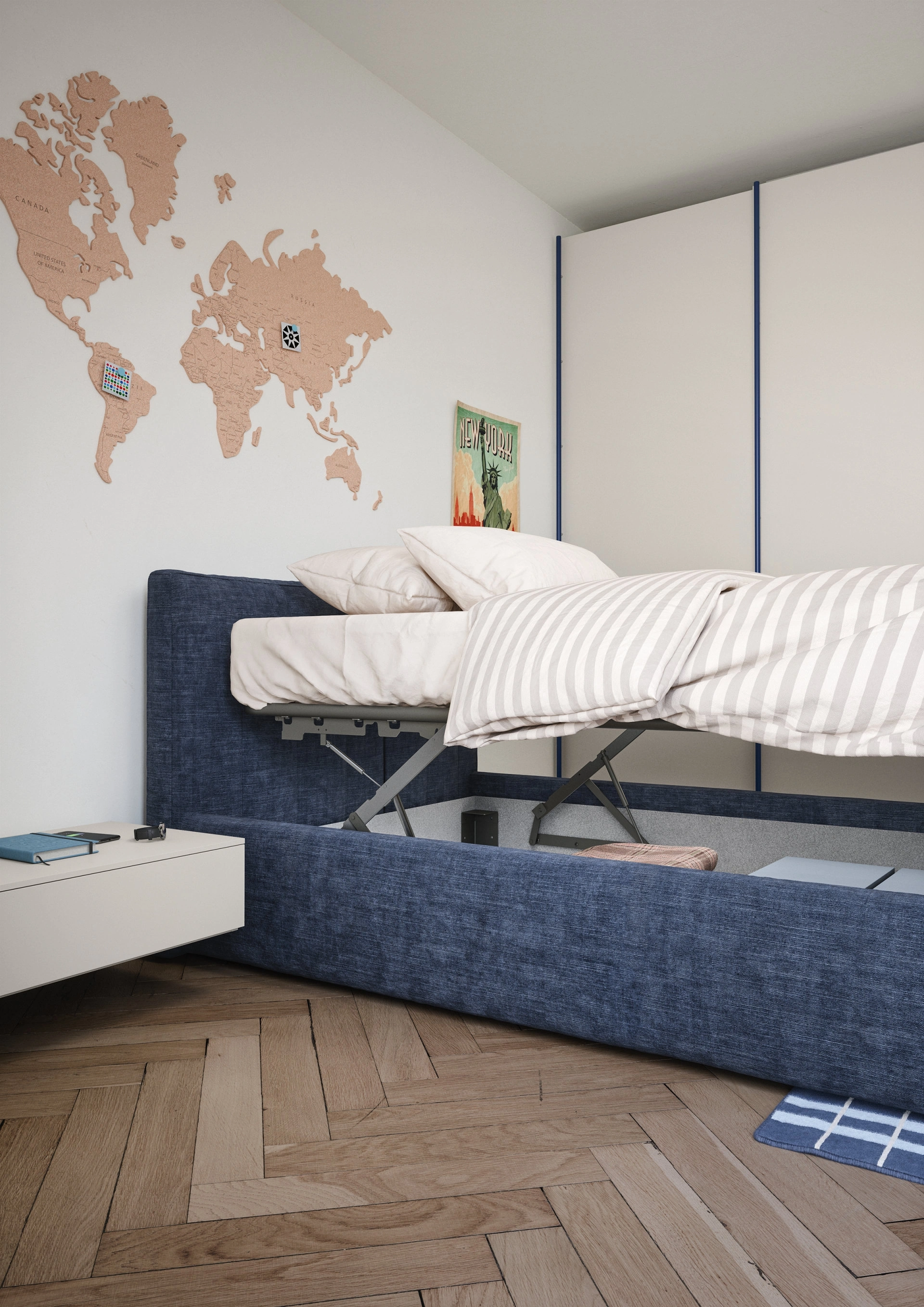 La cameretta dei ragazzini include tutto il necessario per assicurare un ambiente confortevole, in cui sono presenti i letti moderni come questo. Una soluzione che rispetta le norme di sicurezza indispensabili per progettare l'ambiente dei piccoli. Ottieni informazioni sul modello in tessuto nella fotografia: contattaci per qualsiasi info compilando il form in basso.