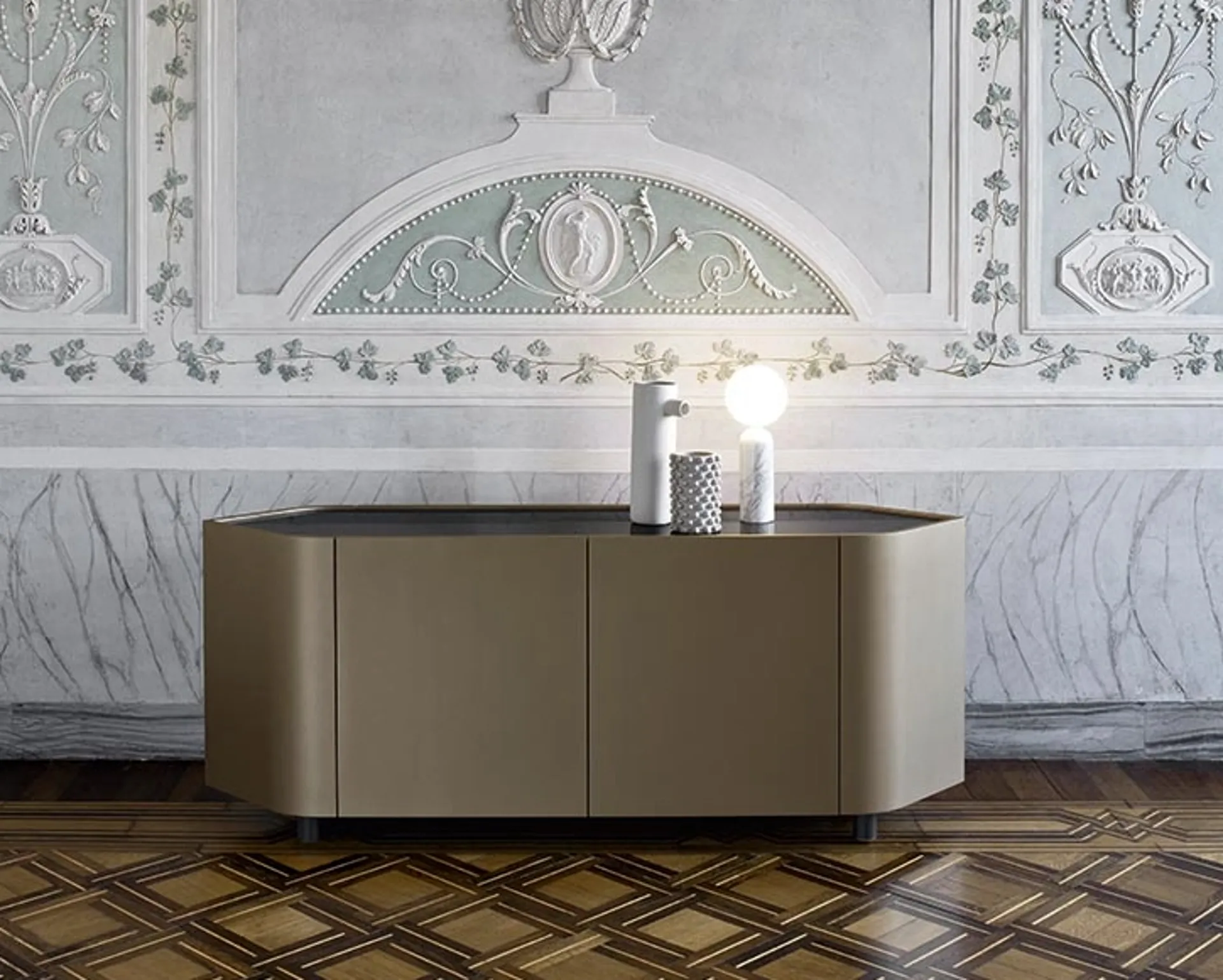 Per gli appassionati nel settore dell'arredo questo modello di mobile soggiorno dalle linee moderne garatisce la qualità del noto e conosciuto brand: contattaci per informazioni e preventivi. Se quello che cerchi è una madia robusta, gradevole e ricercata per organizzare al meglio il tuo soggiorno, lasciati stuzzicare dalle più belle Madie moderne delle migliori marche di Arredamento Casa. La Madia Gioberg in laccato micalizzato Nickel di Alf Da Frè qui presente realizzata in laccato opaco è il miglior acquisto, poiché dona un tocco ricercato al living.