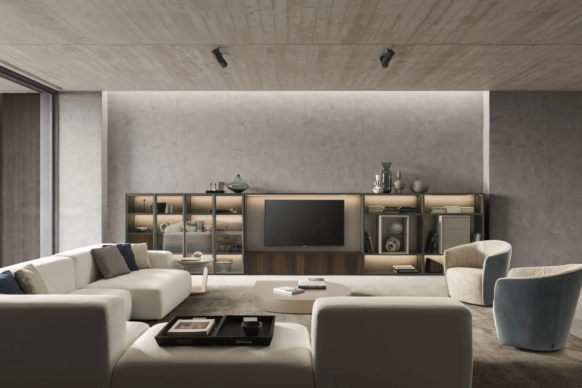 La Parete Attrezzata Pari & Dispari 07 di Presotto nella fotografia è una tra le più originali soluzioni d’arredo in commercio: grandi doti di componibilità e le diverse opportunità di progettazione la rendono bella e funzionale. Visto che il soggiorno deve essere uno spazio agevole e di grande valore estetico, sono indispensabili alcuni arredi belli e funzionali come le Pareti Attrezzate. Lasciati affascinare da un ricco catalogo di arredi per la zona giorno e potrai trovare la parete attrezzata che fa per te. I mobili soggiorno in legno dalle linee moderne come il modello nella fotografia sono veramente eclettici e capaci di ammobiliare il soggiorno sfruttando bene ogni angolo.
