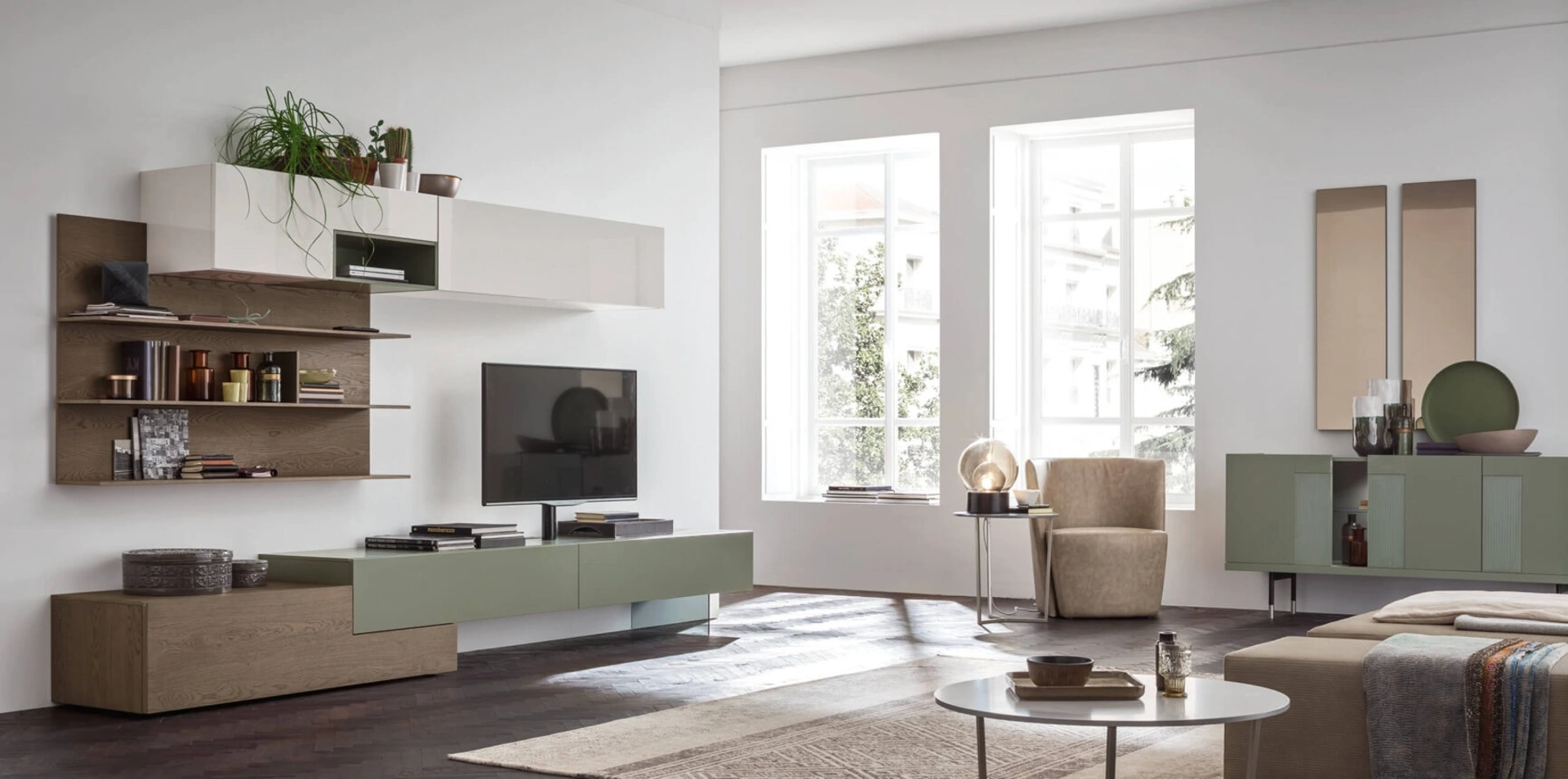 Questa parete attrezzata è una delle soluzioni della firma e ti consentirà di ammobiliare il soggiorno seguendo le più personali esigenze abitative. Attraverso un gioco dinamico di accostamenti fra componenti a giorno o vani chiusi, le Pareti Attrezzate moderne arredano il soggiorno usufruendo al meglio di ogni spazio. Le Pareti Attrezzate hanno assunto un posto fondamentale nella zona giorno delle nostre case: sono arredi multifunzionali e salvaspazio sempre realizzabili su misura.
