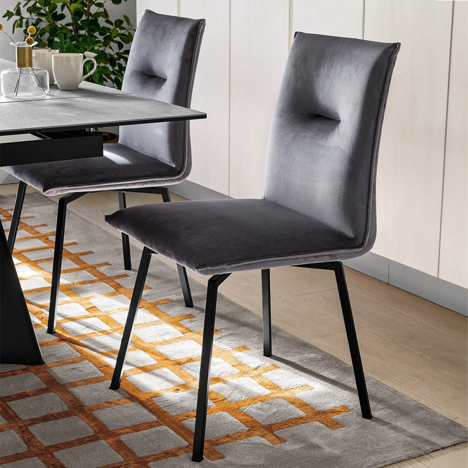 Nel living o nella zona cucina, le Sedie sono pezzi di arredo imprescindibili: definiscono il mood del locale e svolgono un ruolo essenziale. Se vuoi una sedia in ecopelle per completare l’atmosfera di casa, scopri di più sul modello nell'immagine e trova un tavolo abbinato. Il living e la zona cucina non sono davvero piacevoli e confortevoli se arredati con le Sedie sbagliate, ecco perché devono essere abbinate al resto degli arredi e alle dimensioni della stanza. Una grande varietà di sedute fisse da pranzo ti sta aspettando in negozio: contattaci per informazioni e preventivi e ottimizza i tuoi locali con l'eccellenza che solo Connubia sa assicurarti per mobili e oggetti accessori.